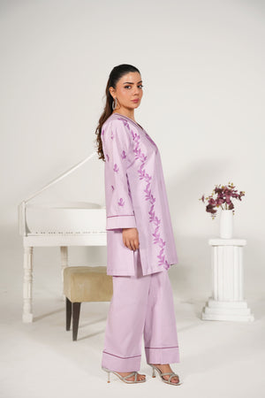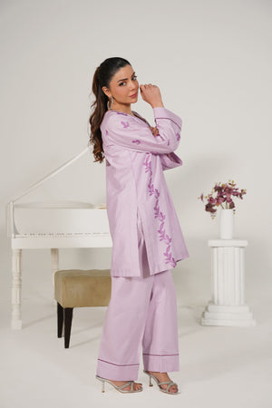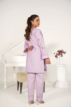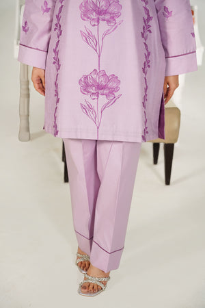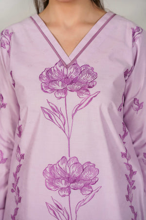 2 Piece Pret- Embroided Premium Lawn Light Lilac Suit